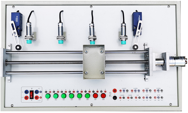 主要由運動小車(直流電機驅(qū)動)、同步帶輪傳動機構(gòu)、直流電機、光電傳感器、電感式傳感器、電容式傳感器、行程開關(guān)等組成,通過傳感檢測、PLC編程,實現(xiàn)運動距離測量、傳動控制、定向控制、定位控制、報警運行控制、點動控制、位置顯示控制等,能實現(xiàn)小車的精確定位。該系統(tǒng)外觀精美,體積緊湊,重量輕。
