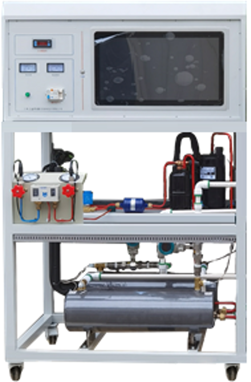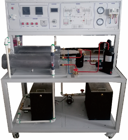 1、采用水冷式機組,配備全封閉式制冷壓縮機、冷凝器、蒸發(fā)器等制冷系統(tǒng)真實部件,并設(shè)有智能溫度調(diào)節(jié)儀、流量計、壓力表、電壓表、電流表等測量儀表。