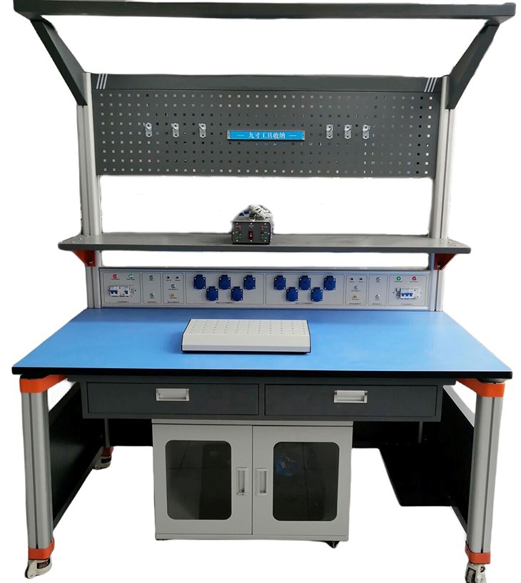 4、工具柜:不含輪尺寸 720mm×500mm×485mm(長×深×高),用優(yōu)質(zhì)冷軋鋼板焊接而成,表面靜電噴塑。工具柜下裝帶剎車的萬向輪,使工具柜可以隨意固定和移動,可放置實訓(xùn)電路板、元器件、工具、耗材等。