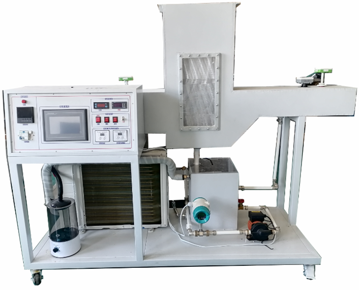 蒸發(fā)冷卻裝置,空氣與水在填料表面進(jìn)行接觸換熱,實(shí)現(xiàn)空氣降溫。循環(huán)空氣可實(shí)現(xiàn)10-50℃之間調(diào)節(jié);進(jìn)口空氣可實(shí)現(xiàn)溫度、濕度調(diào)節(jié);蒸發(fā)冷卻設(shè)備設(shè)有透明窗口,便于學(xué)生觀察內(nèi)部結(jié)構(gòu)。