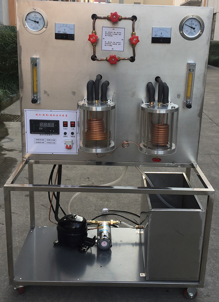 可視化制冷循環(huán)演示裝置,制冷循環(huán)實(shí)驗(yàn)實(shí)訓(xùn)裝置,采用透明耐壓玻璃作殼體,可觀察制冷系統(tǒng)中的壓縮機(jī)、蒸發(fā)器、冷凝器等組件,可直接觀察到制冷劑的蒸發(fā)和冷凝現(xiàn)象,并通過(guò)進(jìn)出水溫的變化觀測(cè)制冷效果。