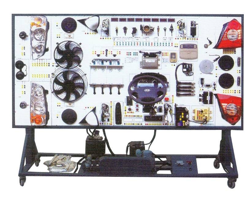 汽車電氣設(shè)備實(shí)訓(xùn)室。汽車電器設(shè)備實(shí)訓(xùn)室包含有汽車燈光系統(tǒng)、車載網(wǎng)絡(luò)系統(tǒng)、全車電器系統(tǒng)、汽車啟動(dòng)系統(tǒng)、汽車空調(diào)系統(tǒng)、全車線路試驗(yàn)臺、等實(shí)訓(xùn)教學(xué)設(shè)備。該實(shí)訓(xùn)室可以承擔(dān)《汽車構(gòu)造》、《汽車電器設(shè)備》、《汽車電控系統(tǒng)》、《汽車檢測與診斷》等課程的實(shí)踐教學(xué)任務(wù)?梢杂糜谘芯、分析全車電器系統(tǒng)、燈光系統(tǒng)、儀表系統(tǒng)等電器設(shè)備的電路及功能。利用這些系統(tǒng)進(jìn)行實(shí)踐教學(xué),使學(xué)生熟悉汽車電器的結(jié)構(gòu)和工作原理,掌握各個(gè)系統(tǒng)的基本組成電路,掌握主要電路的檢測方法和系統(tǒng)的故障特征,從而具有一定的檢測和調(diào)校能力。