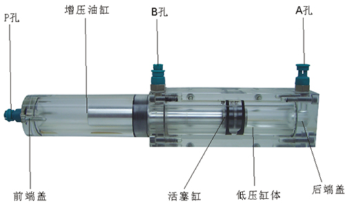 2、增壓油缸的前端、后端蓋、低壓缸體、增壓缸體等均采用了進(jìn)口透明有機(jī)玻璃材料精制而成,透明清晰,活塞桿采用了合金鋁材料,并配合油接頭,密封圈,內(nèi)六角螺絲等標(biāo)準(zhǔn)件裝配而成,通過(guò)它可明確地觀察到活塞桿,油封,油孔等結(jié)構(gòu)及其運(yùn)行過(guò)程,具有形象逼真,性能可靠等優(yōu)點(diǎn),它既可作為教學(xué)模型,也可以液壓實(shí)驗(yàn)元件進(jìn)行實(shí)驗(yàn)演示。