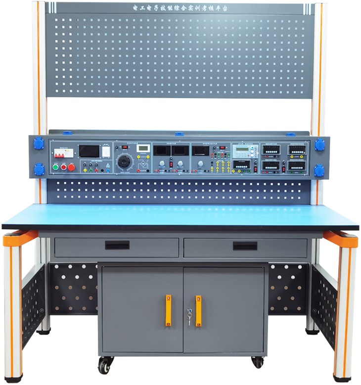 電工電子技能綜合實訓裝置由實驗主機箱、儀器架、實訓桌、移動矮柜、電工電子實訓套件、學生凳等組成。實驗裝置支架與實驗桌可組合、可拆裝。支架與桌腳一體,鋁合金結(jié)構。