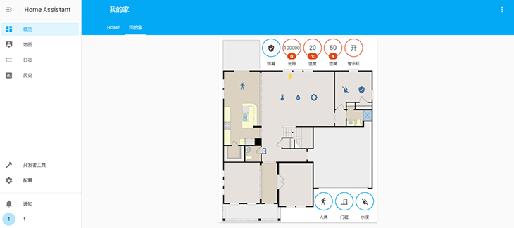 AIoT平臺向用戶推薦提供Home Assistant開源系統(tǒng)進行智能家居案例實現(xiàn)。Home Assistant作為一個基于Python3的自動化智能家居平臺,支持眾多品牌的智能家居設(shè)備部署,方便手動或按照自己的需求自動化聯(lián)動各種外部設(shè)備,可通過Node-RED管理設(shè)備的自動化規(guī)則,直觀展現(xiàn)傳感器設(shè)備在不同環(huán)境下實現(xiàn)的功能。用戶還可自主繪制并導(dǎo)入智能家居場景平面圖,設(shè)置相關(guān)傳感器設(shè)備的位置,提高用戶體驗感。