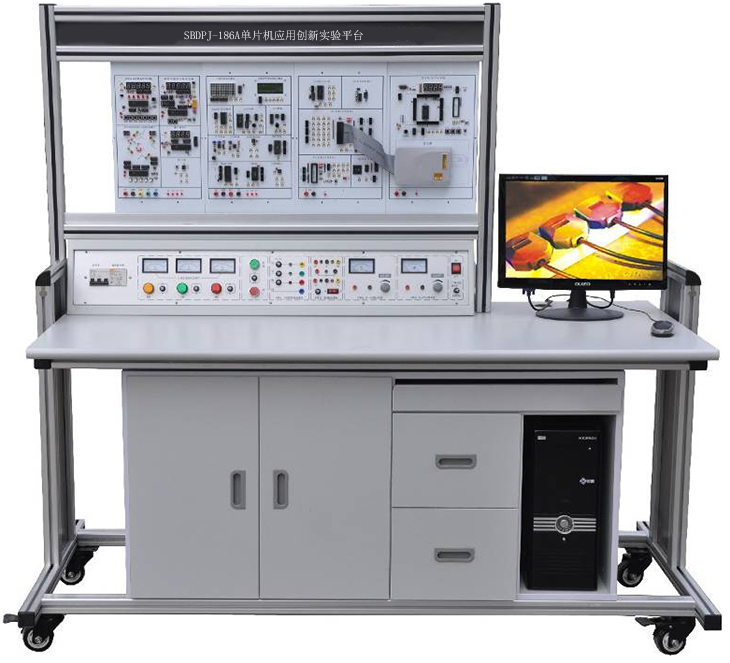 單片機應(yīng)用創(chuàng)新實驗裝置由控制屏、實驗掛箱、實驗桌組成,通過本實驗臺可完成單片機的接口擴展、數(shù)據(jù)采集、數(shù)據(jù)顯示、鍵盤控制、定時器、打印機接口等實驗,配備有仿真器。