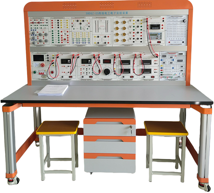 電工電子實(shí)驗(yàn)平臺(tái)由實(shí)驗(yàn)桌、實(shí)驗(yàn)臺(tái)架、存儲(chǔ)柜、實(shí)驗(yàn)掛箱組件、配件等組成。
