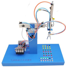 本實訓(xùn)模型是一套完整的氣動機械手搬運裝置,由安裝底板、氣動手指、單桿提升氣缸、雙導(dǎo)桿伸縮氣缸、旋轉(zhuǎn)擺動氣缸、多種類型磁性傳感器、多種類型電磁閥、空氣過濾器、氣源控制滑閥及接線端子排等組成。主要完成物料的搬運功能,氣動機械手通過前臂下降,氣動手指夾緊物體,手臂縮回,手臂右擺,手臂前伸,前臂下降,手爪松開將物體放到指定位置等動作后,機械手返回原位。將電磁閥及磁性開關(guān)等元件的引出線連接到相應(yīng)的端子接線排上,方便使用。能滿足職業(yè)院?删幊炭刂破鳌C電一體化、氣動技術(shù)等相關(guān)課程的實訓(xùn)教學(xué)?刂齐娫矗DC 24V