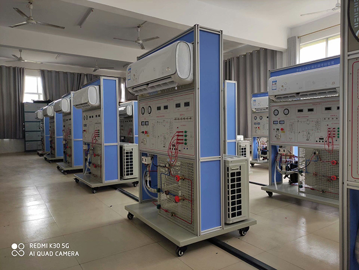 2.、裝置直觀展示了空調的系統(tǒng)結構和工作原理,便于教學演示講解及學生對課本知識的理解掌握。配置的交流電壓表、交流電流表、溫度表、真空壓力表以及相應的信號指示燈,使整個空調系統(tǒng)的實時工作狀態(tài)一目了然;前面板中間印有電氣控制系統(tǒng)原理圖,并設有相應測試點。