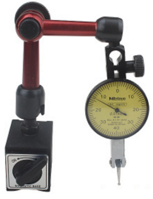百分表是利用精密齒條齒輪機構制成的表式通用長度測量工具。通常由測頭、量桿、防震彈簧、齒條、齒輪、游絲、圓表盤及指針等組成。把百分表安裝在機器人J6法蘭上,通過機器人的不同位置的循環(huán)運動,可快速的測試機器人重復精度。
