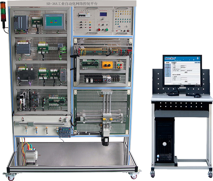 工業(yè)自動(dòng)化網(wǎng)絡(luò)控制實(shí)訓(xùn)平臺(tái),工業(yè)控制網(wǎng)絡(luò)是近年來發(fā)展形成的自動(dòng)控制領(lǐng)域的網(wǎng)絡(luò)技術(shù),是計(jì)算機(jī)技術(shù)、通信技術(shù)與自動(dòng)控制技術(shù)相結(jié)合的產(chǎn)物,其主要包括現(xiàn)場(chǎng)總線技術(shù)和工業(yè)以太網(wǎng)技術(shù)。為了使院校自動(dòng)化專業(yè)的學(xué)生能夠加深對(duì)工業(yè)控制網(wǎng)絡(luò)的理解,直接接觸和操作先進(jìn)的工業(yè)控制設(shè)備,熟悉工業(yè)現(xiàn)場(chǎng)總線的原理和運(yùn)行機(jī)制,使之走上工作崗位后能立即參與解決工程實(shí)際問題,我們研制了一套工業(yè)控制網(wǎng)絡(luò)綜合實(shí)驗(yàn)系統(tǒng)。該實(shí)驗(yàn)系統(tǒng)模擬工業(yè)現(xiàn)場(chǎng)實(shí)際情況,通過PROFIBUS總線和工業(yè)以太網(wǎng),建立主從站通信系統(tǒng),實(shí)現(xiàn)各類傳感器的實(shí)時(shí)數(shù)據(jù)采集和遠(yuǎn)程監(jiān)控。同時(shí),該實(shí)驗(yàn)平臺(tái)還可以為現(xiàn)場(chǎng)總線技術(shù)、工業(yè)自動(dòng)化與控制網(wǎng)絡(luò)、集散控制系統(tǒng)、工業(yè)自動(dòng)化系統(tǒng)課程設(shè)計(jì)、過程控制等專業(yè)課程服務(wù)。