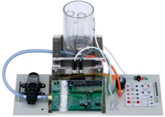 由有機(jī)玻璃水箱、水泵、水槽和液位傳感器組成?刂菩盘柦(jīng)過功率放大電路控制水泵流量,水從有機(jī)玻璃水箱的上部進(jìn)入,下部由一閥門控制水箱出水流量。液位由傳感器檢測,輸出0-10V的液位信號,通過可編程控制器(PLC)或計(jì)算機(jī)控制,實(shí)現(xiàn)液位的開關(guān)和PID閉環(huán)控制。