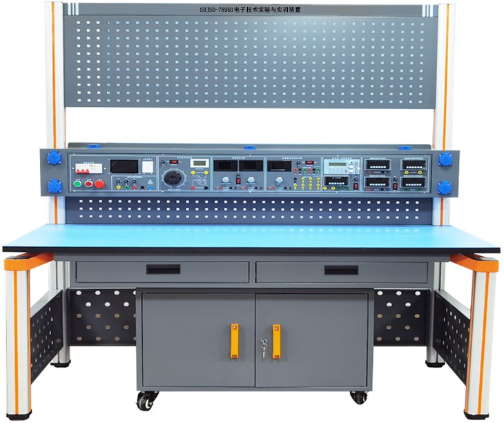 本實訓臺主要由實訓主機箱、儀器架、電源控制箱、獨立實訓電路模塊、實訓桌(含磁吸式實訓基座)、儲存柜、學生凳等組成。