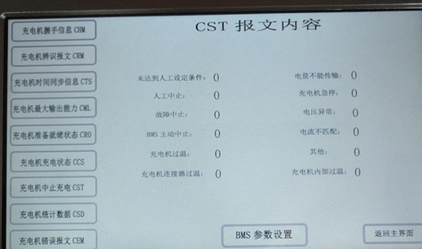 9.3.充電機CTS,CRM, CHM ,CML,CRO,CCS,CST,CSD,CEM報文狀態(tài)實時顯示。