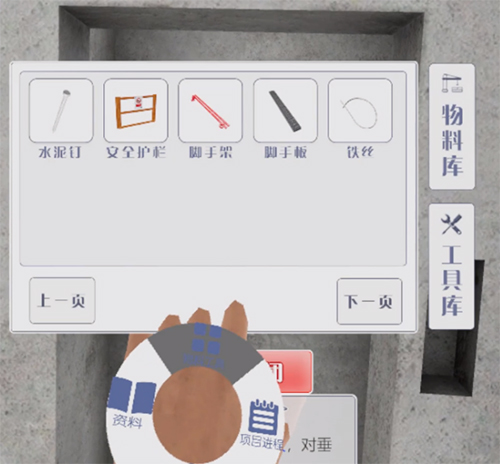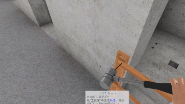 系統(tǒng)可以根據(jù)頭顯的定位和角度變換來(lái)進(jìn)行全場(chǎng)景的展示,在場(chǎng)景中可以體驗(yàn)真實(shí)的施工環(huán)境和相對(duì)應(yīng)的施工過(guò)程,增加沉浸感和體驗(yàn)度。