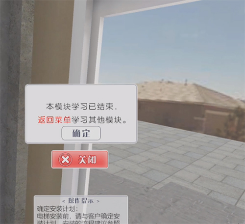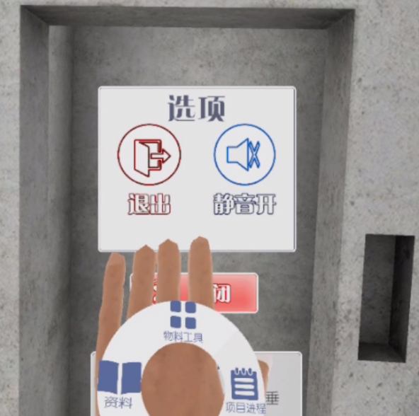 完成一個(gè)單元的學(xué)習(xí)后,可以在場(chǎng)景中找到對(duì)應(yīng)的出口,返回菜單進(jìn)行下一階段的學(xué)習(xí)。也可以在左手輪盤(pán)中選擇"選項(xiàng)"后直接退出系統(tǒng)。