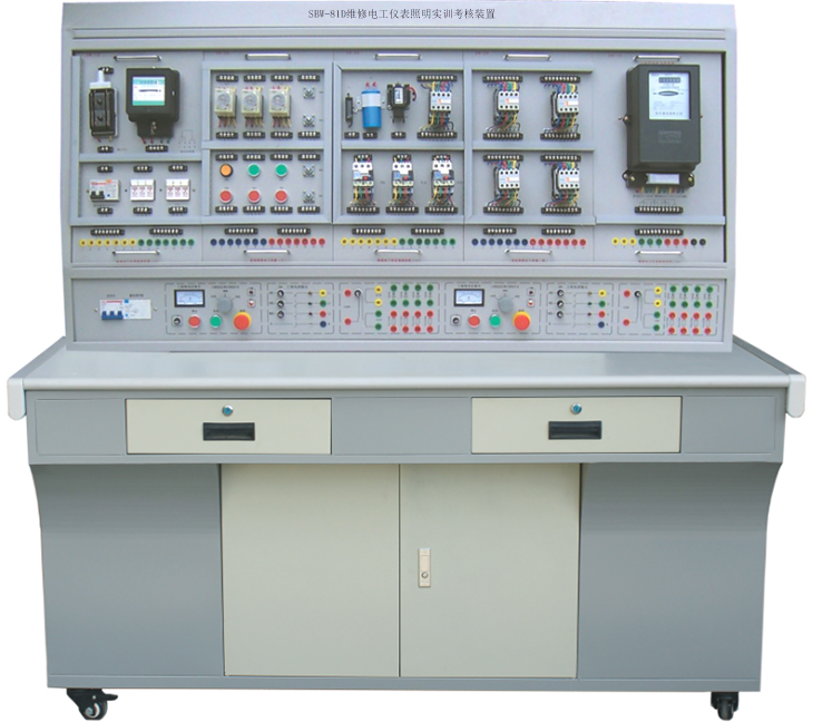 維修電工儀表照明實訓設備,維修電工儀表照明實訓考核裝置"儀表照明實訓考核裝置"是按照勞動和社會保障部頒發(fā)的"工人等級標準"和"職業(yè)技能鑒定"的要求而設計的,該裝置集理論、實際操作和考核鑒定為一體的多功能設備。它不僅能作為電工儀表和照明電路的操作實訓裝置。而且也可用于勞動職業(yè)技能鑒定部門、大中專院校、職校、技校對初、中、高級維修電工技能考核的理想設備。