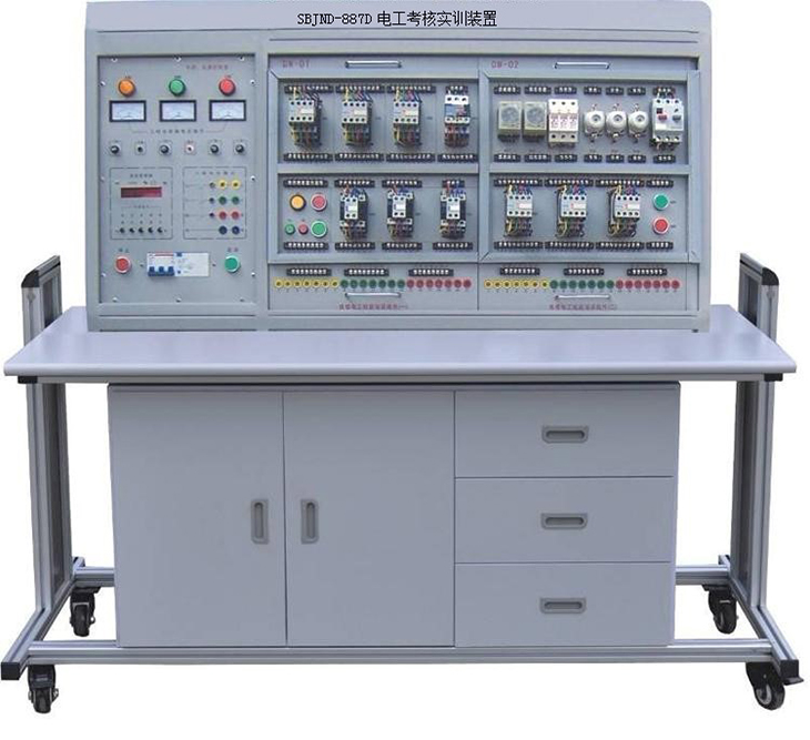 電工實訓考核裝置為配合我國職業(yè)教育和就業(yè)人員實際操作、培訓、鑒定的需求,我公司綜合了大中專院校、職業(yè)院校、技工學校的《電力控制技術》《電力拖動控制線路與技能訓練》《工廠電氣控制技術》《繼電接觸控制技術》等相關科目的實驗及實訓教學內(nèi)容而研發(fā)了本裝置。裝置采用掛箱結(jié)構,實訓項目可擴展性強,可擴展PLC與變頻調(diào)速實訓項目。所有的元器件通過導線引到接線端子上,有利于保護器件,通過線槽走線,接近工業(yè)現(xiàn)場。