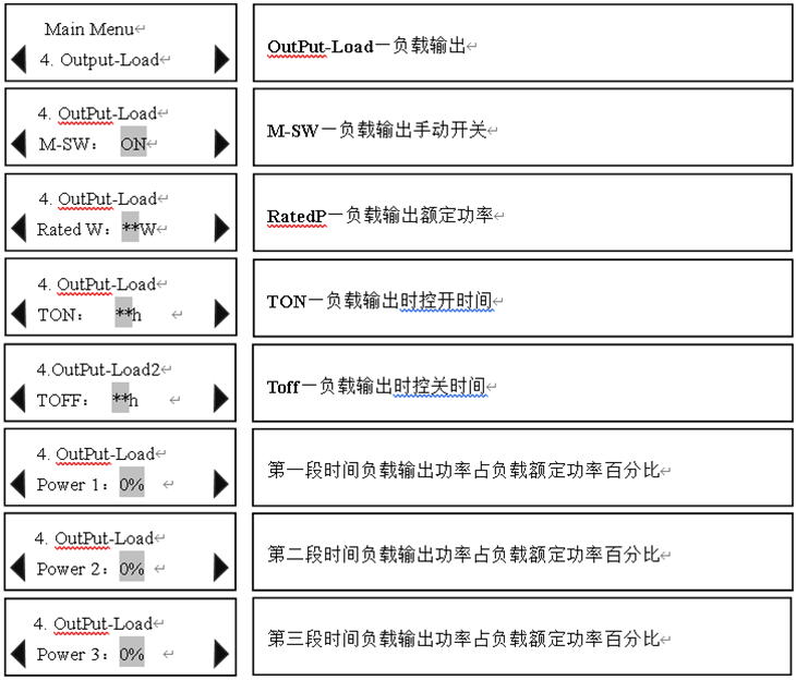 Ø 負(fù)載輸出開關(guān)功能在控制器上用戶可以手動設(shè)置負(fù)載端的打開或關(guān)閉。