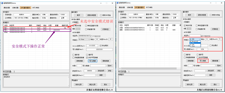 單卡及多卡EPC識(shí)別:?jiǎn)尾阶R(shí)別、單標(biāo)簽循環(huán)識(shí)別、防碰撞識(shí)別; 單卡及多卡TID識(shí)別實(shí)驗(yàn):標(biāo)簽識(shí)別號(hào); 標(biāo)簽UII塊區(qū)讀寫操作:指定UII讀寫、不指定UII讀寫、多字節(jié)寫 GEN2標(biāo)簽的USER多字節(jié)數(shù)據(jù)讀寫 GEN2標(biāo)簽的安全操作 GEN2標(biāo)簽的鎖定操作 |