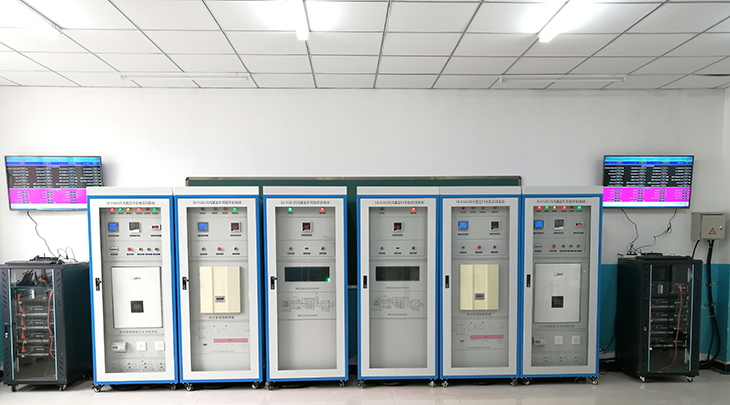 其工作原理是風(fēng)力、光伏發(fā)電系統(tǒng)發(fā)電,并由電池儲(chǔ)能,由儲(chǔ)能逆變系統(tǒng)轉(zhuǎn)換成交流電后接入電網(wǎng),燃料電池單元所發(fā)的電能經(jīng)DC-DC轉(zhuǎn)換后送入直流總線作后備儲(chǔ)能;系統(tǒng)可離網(wǎng)運(yùn)行亦可并網(wǎng)運(yùn)行,在網(wǎng)端能耗負(fù)荷內(nèi)完成削峰填谷功能。