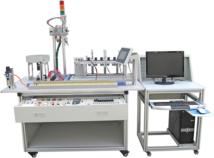 光機電一體化實訓考核裝置由鋁合金導軌式實訓臺、典型的機電一體化設備的機械部件、PLC模塊、變頻器模塊、按鈕模塊、電源模塊、模擬生產(chǎn)設備實訓模塊、接線端子排和各種傳感器、計算機等組成。整體結構采用開放式和拆裝式,機電一體化實訓裝置用于機械部件組裝,可根據(jù)現(xiàn)有的機械部件組裝生產(chǎn)設備,也可添加機械部件組裝其他生產(chǎn)設備,使整個裝置能夠靈活的按教學或競賽要求組裝具有生產(chǎn)功能的機電一體化設備。模塊采用標準結構和抽屜式模塊放置架,互換性強;按具有生產(chǎn)性功能和整合學習功能的原則確定模塊內(nèi)容,使教學或競賽時可方便的選擇需要的模塊。設備需完全符合電工電子全國職業(yè)技能大賽所要求,同時還要求具有可拓展功能,可以組成更加大型的生產(chǎn)模擬系統(tǒng),以配合各個用戶學校不同層次,不同專業(yè)的教學及培訓要求。