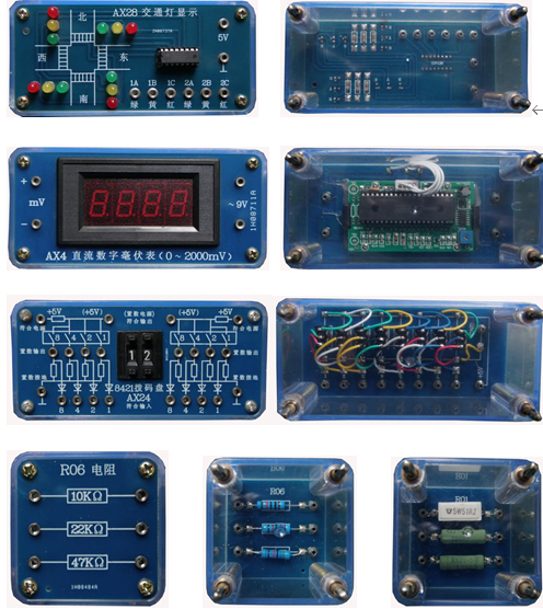 (透明電工電子元件模塊示例圖,共9塊板,140多只透明有機(jī)塑料封閉元件盒)