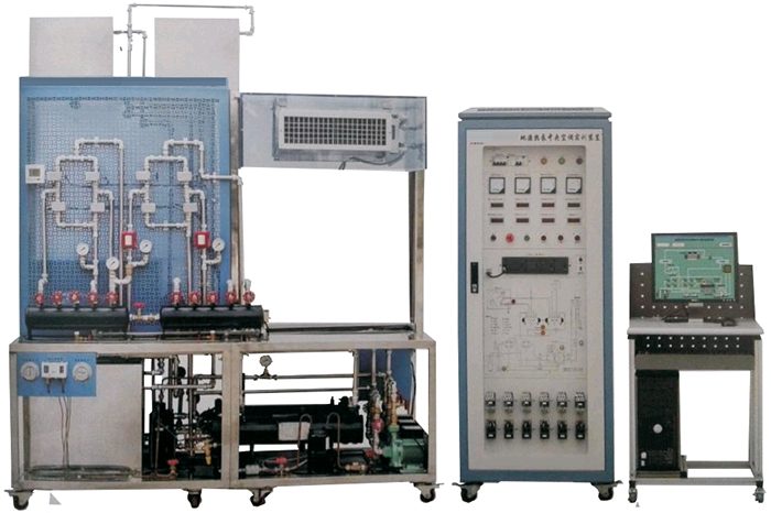空氣調(diào)節(jié)系統(tǒng)由、模擬房間、風(fēng)機(jī)盤管、中央空調(diào)控制器、閥門,一臺(tái)水泵、不銹鋼換熱器組等組成,主要完成空氣調(diào)節(jié)作用。(室內(nèi)送風(fēng)風(fēng)機(jī)轉(zhuǎn)速可調(diào)),主要完成制冷機(jī)組冷卻熱交換,為室內(nèi)提供適當(dāng)?shù)臏囟?/span>