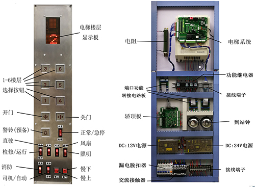 教學(xué)電梯的電氣控制系統(tǒng)是采用PLC和交流變頻調(diào)速控制,其硬件結(jié)構(gòu)的組成及功能與實(shí)際電梯完全一樣,具有自動(dòng)平層、自動(dòng)開(kāi)關(guān)門(mén)、順向響應(yīng)轎內(nèi)外呼梯信號(hào)、直駛、電梯安全運(yùn)行保護(hù)等功能,以及電梯停用、急停、檢修、慢上、慢下、照明和風(fēng)扇等特殊功能。
