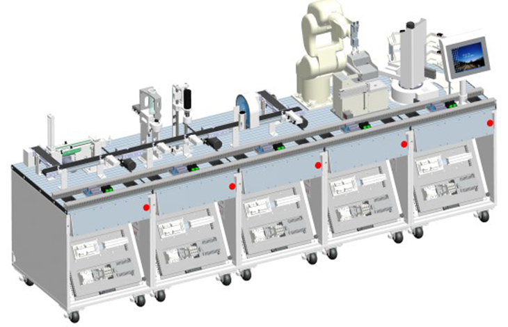 Station)形式綜合體現(xiàn)機(jī)電一體化自動生產(chǎn)、工業(yè)機(jī)器人自動化“工作單元”、及其他附屬工作設(shè)施,操作者可以在學(xué)習(xí)中培養(yǎng)訓(xùn)練自動化專業(yè)技能、機(jī)器人自動化技能、世界級競賽要求等,同時也可以提高職業(yè)素養(yǎng)中的社會能力與方法能力。