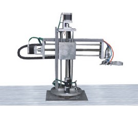 4. 搬運機器人:檢測單元檢測到產品分類信息時,通過通信網絡將檢測結果傳送到該站,該站通過坐標式氣動機器人將從生產線上送來的成品送往全自動堆垛機,主要由四自由度氣動機械手組成,電氣控制部分由PLC完成。