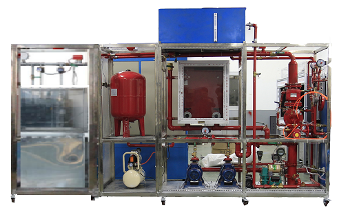 消火栓及預作式自動噴淋滅火系統(tǒng)實訓裝置主要有系統(tǒng)設備有控制區(qū),消防供水池、高位水泵保護區(qū)域、等主要配備有預作用報警裝置、消防氣壓罐、消防火栓箱、消防栓、消防帶、消防水泵、閉式噴淋頭、高位水泵、備用泵、氣壓泵、感煙探測器、感溫探測器、自動充氣裝置、水流指示器、信號碟閥、壓力開關的狀態(tài)檢測,設有全透明護區(qū)域、具有火災模擬演示等組成。管路采用渡鋅管進行設計,渡鋅管的切割、套絲、安裝和通水試驗操作,通過控制系統(tǒng)實現(xiàn)預作用噴淋火實訓、通過控制系統(tǒng)可實現(xiàn)預作噴淋滅火功能、消防栓滅火功能。