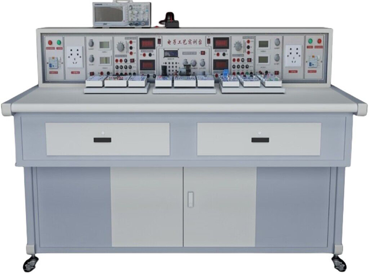實(shí)訓(xùn)桌為鐵質(zhì)雙層亞光密紋噴塑結(jié)構(gòu),桌面為防火、防水、耐磨高密度板,結(jié)構(gòu)堅(jiān)固。實(shí)訓(xùn)桌下方設(shè)有柜子,可以放置實(shí)訓(xùn)模塊和工具以及資料等,還設(shè)有四個(gè)帶剎車的輪子,便于移動(dòng)和固定。