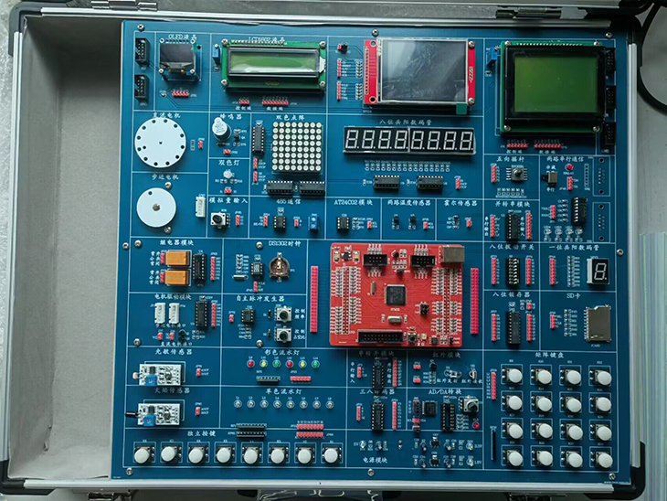 STM32單片機(jī)實(shí)驗(yàn)箱,從基礎(chǔ)的入門到深入,最后到STM32的高級(jí)應(yīng)用技術(shù),非常適合即將畢業(yè)的希望通過這找到工作的大學(xué)生。基于STM32單片機(jī),從單片機(jī)實(shí)驗(yàn)教學(xué)的特點(diǎn)出發(fā),基礎(chǔ)功能實(shí)驗(yàn)電路采用一體化設(shè)計(jì)方式,創(chuàng)新拓展型實(shí)驗(yàn)電路采用獨(dú)立模塊方式,需要時(shí)接入主板,既兼顧演示驗(yàn)證性實(shí)驗(yàn)、又考慮到綜合設(shè)計(jì)和創(chuàng)新研究性實(shí)驗(yàn)的需要。主板上自帶CPU編程下載接口,是一款靈活性極強(qiáng)的集編程下載調(diào)試與一體的新型單片機(jī)實(shí)驗(yàn)教學(xué)平臺(tái),適合各層次學(xué)生進(jìn)行單片機(jī)原理和應(yīng)用方面的實(shí)驗(yàn)和創(chuàng)新。
