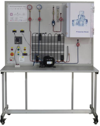 制冷原理實(shí)訓(xùn)考核裝置敞開(kāi)式設(shè)計(jì),安裝有制冷管路設(shè)備,配各種電路原理圖實(shí)訓(xùn)板,并將電路所需的電器元件安裝在實(shí)訓(xùn)板上,學(xué)生可根據(jù)電路原理圖的要求進(jìn)行制冷電路的接線實(shí)訓(xùn)、制冷回路相關(guān)指示數(shù)據(jù)的分析、制冷回路常見(jiàn)故障分析等。提供復(fù)合式(單門(mén)直冷式、雙門(mén)直冷式、雙門(mén)間冷式)電冰箱電氣控制線路的實(shí)際工業(yè)用電器,形象直觀,可靠性好,使用壽命長(zhǎng), 可自行連接線路,并任意設(shè)置故障點(diǎn)。適用于技工院校、職業(yè)學(xué)校作為制冷基本技能的實(shí)訓(xùn)。