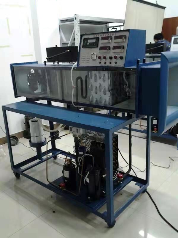 風道平衡法空調(diào)實驗臺,由制冷壓縮機;風冷冷凝器;風機盤管蒸發(fā)器;實驗風洞;蒸氣加濕器;電加熱器;保障蒸發(fā)器被壓的引風機;進、出風洞的空氣參數(shù)測試由制冷壓縮機;風冷冷凝器;風機盤管蒸發(fā)器;實驗風洞;蒸氣加濕器;電加熱器;保障蒸發(fā)器被壓的引風機;進、出風洞的空氣參數(shù)測試系統(tǒng);控制調(diào)節(jié)系統(tǒng)等組成。