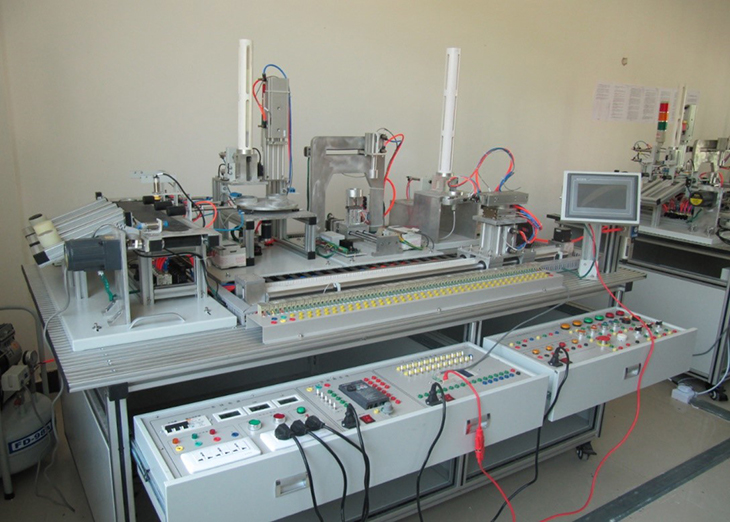 自動(dòng)生產(chǎn)線實(shí)訓(xùn)裝置由由鋁合金導(dǎo)軌式實(shí)訓(xùn)臺(tái)、典型的機(jī)電一體化設(shè)備的機(jī)械部件、PLC模塊、變頻器模塊、按鈕模塊、電源模塊、模擬生產(chǎn)設(shè)備實(shí)訓(xùn)模塊、接線端子排和各種傳感器、計(jì)算機(jī)等組成。整體結(jié)構(gòu)采用開(kāi)放式和拆裝式,實(shí)訓(xùn)裝置用于機(jī)械部件組裝,可根據(jù)現(xiàn)有的機(jī)械部件組裝生產(chǎn)設(shè)備,也可添加機(jī)械部件組裝其他生產(chǎn)設(shè)備,使整個(gè)裝置能夠靈活的按教學(xué)或競(jìng)賽要求組裝具有生產(chǎn)功能的機(jī)電一體化設(shè)備。模塊采用標(biāo)準(zhǔn)結(jié)構(gòu)和抽屜式模塊放置架,互換性強(qiáng);按具有生產(chǎn)性功能和整合學(xué)習(xí)功能的原則確定模塊內(nèi)容,使教學(xué)或競(jìng)賽時(shí)可方便的選擇需要的模塊。設(shè)備需完全符合電工電子全國(guó)職業(yè)技能大賽所要求,同時(shí)還要求具有可拓展功能,可以組成更加大型的生產(chǎn)模擬系統(tǒng),以配合各個(gè)用戶(hù)學(xué)校不同層次,不同專(zhuān)業(yè)的教學(xué)及培訓(xùn)要求。