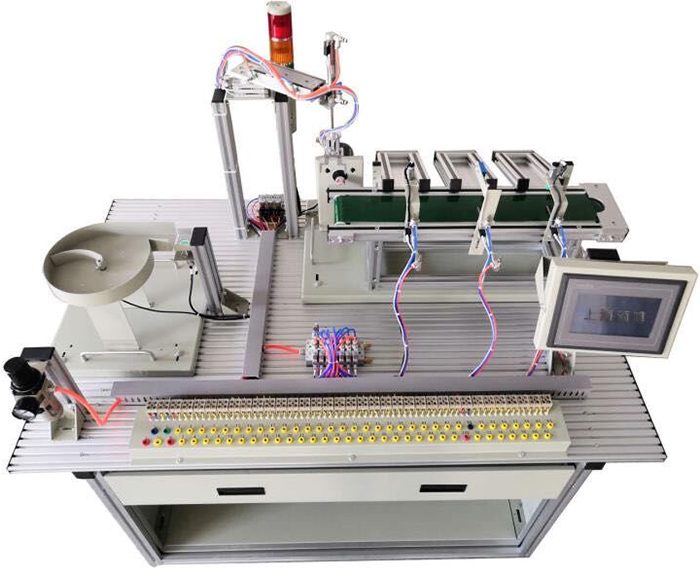 機電一體化實訓設備,機電一體化實訓裝置,機電一體化實驗室設備現(xiàn)代高等職業(yè)教育特點是培養(yǎng)高技能型的人才。這就必須要加強對學生動手實踐能力的培養(yǎng),才能適應時代和社會對高職學生實踐能力和創(chuàng)新能力的要求。尤其對機電類專業(yè),社會需要的是既有理論知識,又有實踐能力的務實性綜合型人才。針對高職機電類學生走上工作崗位之前開展的機電一體化綜合實訓所要求的內容和技能,設計了一套適合高職學生特點的機電綜合實訓設備。整個實訓系統(tǒng)包含了電路電子技術、微機技術、自動控制技術、傳感器技術、機械設計、液壓與氣壓傳動等知識點,可讓學生做這些知識點的單一的實訓,也可構成整體進行綜合實訓。本實訓系統(tǒng)主要設計了基于FX-2N系列的PLC控制的機電綜合實訓教學平臺。