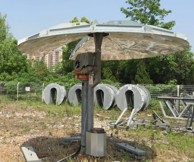 集熱器樣式,類似美國(guó)Infinia英菲尼爾公司斯特林聚光碟樣式,此樣式特點(diǎn)是反光拋物面具有扇形開(kāi)口,與立柱交叉。
