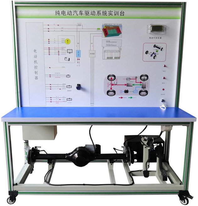 檢測控制面板(裝有各種檢測端子以及彩色電路圖)、氫燃料電池及控器、電機(jī)與驅(qū)動橋總成、電機(jī)控制器、點火開關(guān)、電子油門、檔位裝置、電池組與鐵電池箱、充電機(jī)、DC12V裝置、一體化全鋁合金型材搭建的移動臺架(1500×700×1700mm 帶自鎖腳輪裝置,帶安裝檢測端子的原理面板,面板1448×940mm)、設(shè)備操作說明書。
