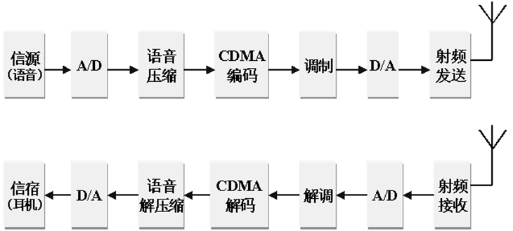 (2)收端:接收、下變頻、解調(diào)、CDMA譯碼、擴張、還原語音。