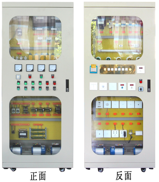 2、電氣柜體正面內(nèi)安裝賓館及公寓內(nèi)部單相電氣控制電路,主要包括賓館客房及公寓住宅全套單相電照明及電器插座模塊(含專用控制面板)同時還配備各種弱電信息模塊。學(xué)生通過各種不同的線路連接,既能進(jìn)行一些諸如請勿打擾電路安裝等小課題的實(shí)訓(xùn),也能進(jìn)行一些諸如客房全套電器安裝及故障設(shè)置和排除等綜合性課題的實(shí)訓(xùn)。