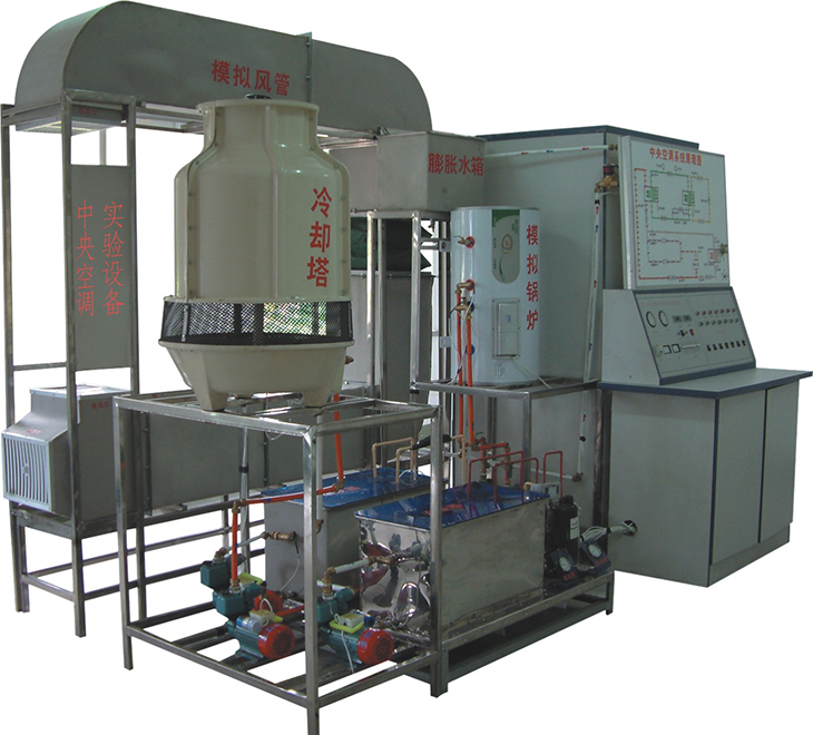 中央空調(diào)實驗設(shè)備,中央空調(diào)實驗臺,中央空調(diào)實驗室設(shè)備,中央空調(diào)實訓(xùn)室是制冷專業(yè)重點(diǎn)實訓(xùn)室,也是職業(yè)技能鑒定中心制冷高級工和技師考證點(diǎn)之一,能進(jìn)行中央空調(diào)設(shè)備的測繪、運(yùn)行管理、調(diào)試與維修等實訓(xùn),設(shè)備主要由水冷式制冷系統(tǒng)(帶冷卻塔)、空氣調(diào)節(jié)系統(tǒng)、冷庫模型及電腦智能控制系統(tǒng)等組成。實訓(xùn)主要項目有:大型風(fēng)冷式水機(jī)組的調(diào)試及維護(hù)、中央空調(diào)機(jī)組的安裝及調(diào)試維護(hù)、中央空調(diào)風(fēng)道裝置的安裝及維護(hù),以及中央空調(diào)系統(tǒng)設(shè)計。為了驗證理論學(xué)習(xí)空氣調(diào)節(jié)以及空調(diào)設(shè)計知識,中央空調(diào)實訓(xùn)室采用現(xiàn)場教學(xué)演示中央空調(diào)制冷制熱系統(tǒng),空調(diào)循環(huán)系統(tǒng)、空氣凈化環(huán)節(jié)等等。